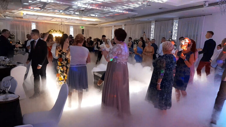 Oferuję Wam obsługę Pierwszego Tańca oraz Oprawę Tortu, przy zastosowaniu wytwornicy ciężkiego dymu, która sublimuje suchy lód, a następnie „wydmuchuje” na parkiet gęstą, nisko wiszącą chmurę.