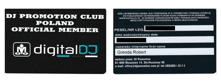 Pracuję na wysokiej klasy sprzęcie marki DENON DJ, która zapewnia najwyższą jakość dźwięku. Co ważne, gram wyłącznie legalną muzykę. Jestem zrzeszony w organizacji DJ Promotion, a każdy zagrany utwór, pochodzi właśnie od nich i jest opatrzony specjalnym certyfikatem legalności.