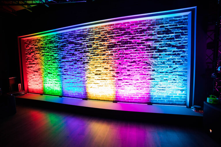Oprócz Stanowiska DJskiego w technologii LED, które „świeci” podczas wyświetlania animacji, na całość zestawu oświetlenia składają się 4 głowy sceniczne oraz 2 pionowe belki LEDowe, które pracują zsynchronizowane ze sobą, tworząc w każdym bloku muzycznym swoisty efektowny pokaz.