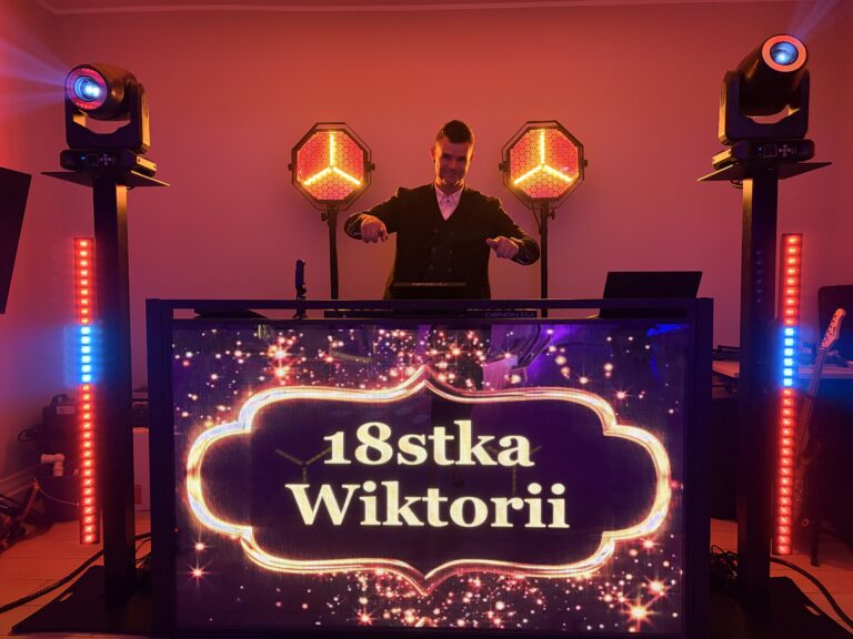 Nowoczesne stanowisko DJskie w technologii LED wyświetlające specjalne animacje, dodatkowo urozmaicające zabawę, a także filmy, teledyski, personalizowane napisy etc.